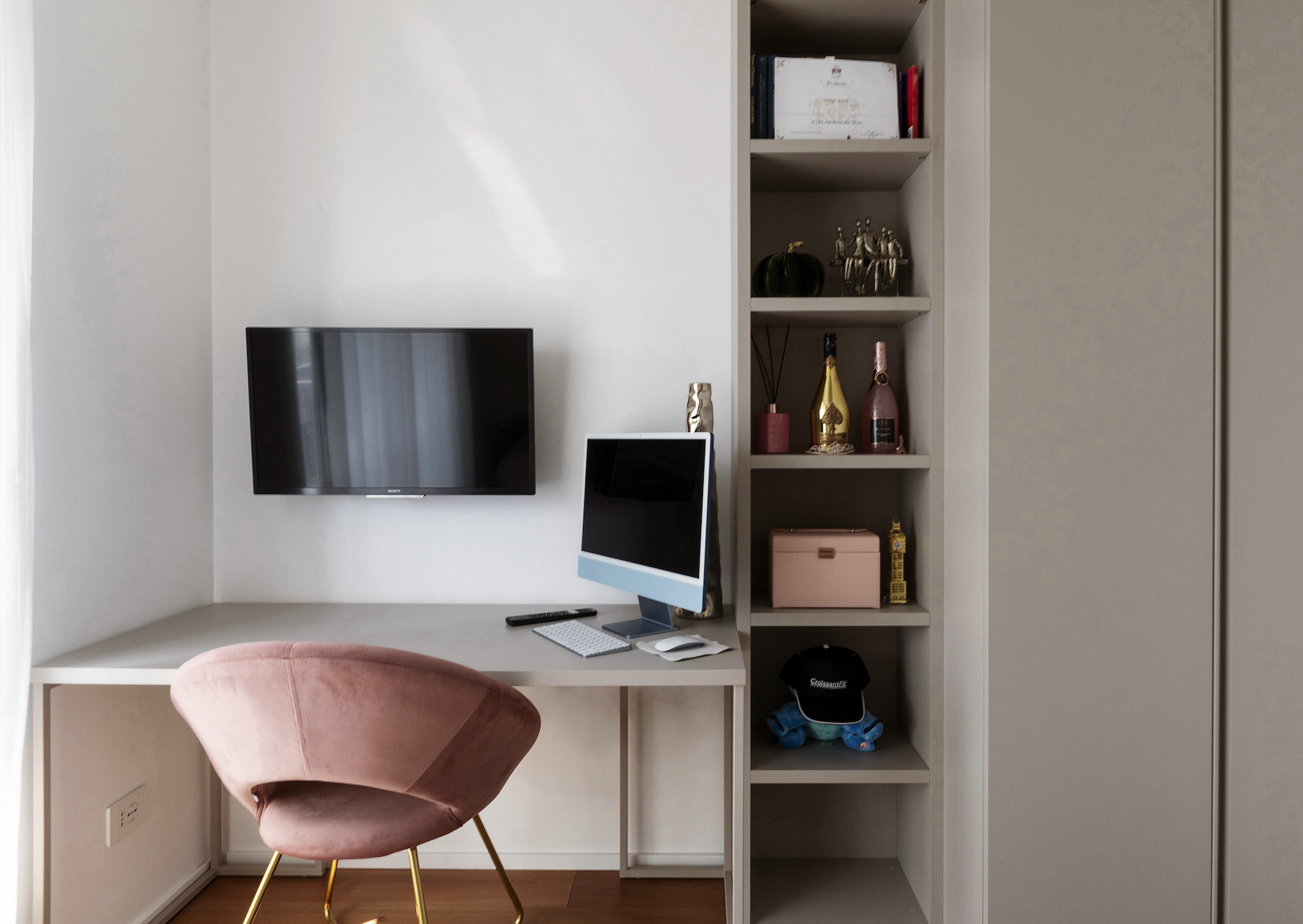 Bedroom wardrobes, boiserie, entrance hall and TV unit made to measure by carpenter